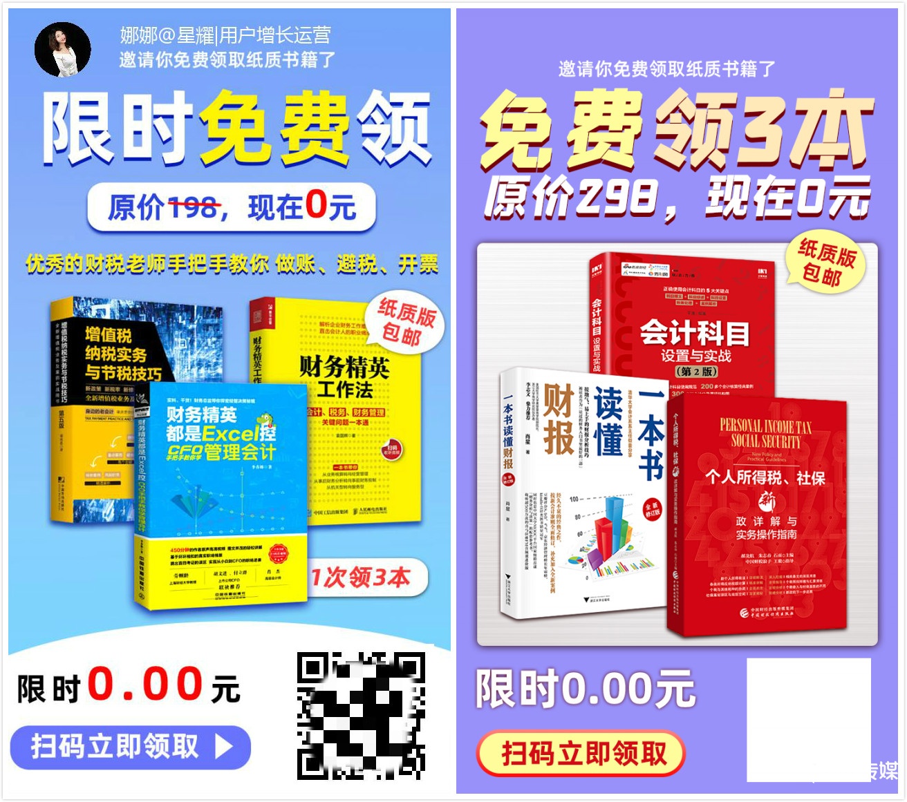 - 推荐语“邀请你免费领纸质书”,突出纸质书;