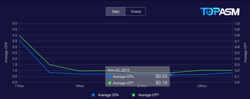 (图二:经过挑选过的关键词CPA从$0.6下降至$0.32)