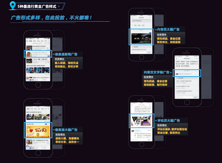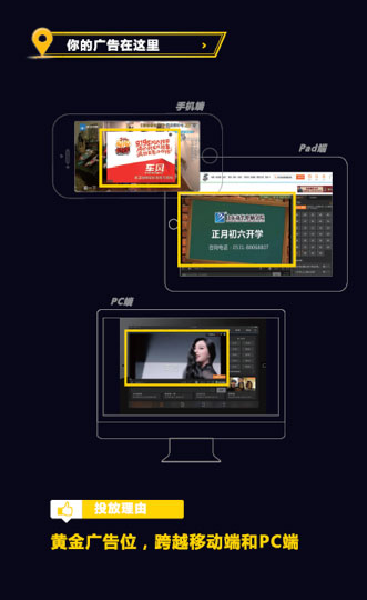 我们拥有涵盖腾讯视频、腾讯网、腾讯网迷你首页、腾讯微博、腾讯新闻客户端的社交优质海量平台资源,您可以选择这些平台查看广告资源的位置和形式,选择适合自己的资源位投放。