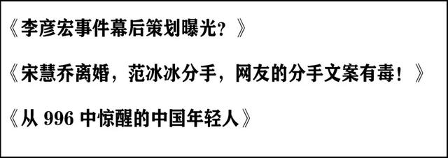 这面三个标题属于热点型事件的标题,热点事件的热度自然而然为文章加分,是新媒体小编的又爱又恨的存在啦!这类标题的关键主要是两个,一个是事件内容或是事件人物,另一个则是对文章内容的提炼了。如《李彦宏事件幕后策划曝光?》,李彦宏是事件人物,策划曝光是文章内容的提炼。