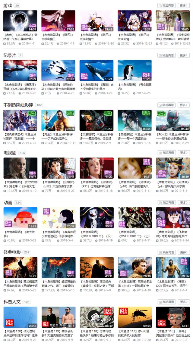 同时也会根据视频的属性,将它再次划分成游戏、纪录片、电视剧、动画、电影等等。