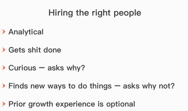 把正确的人放在正确的工作位置非常重要,这对于增长团队也同样适用。增长策略是很容易更改的,但是增长团队中的人很难改变,招错一个人的代价非常大。那么,增长团队中的人需要满足哪些条件呢?