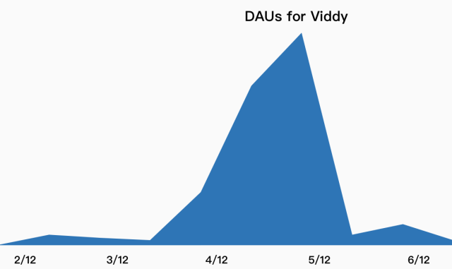 正如下图中的 Viddy,在 2012 年他们的增长势头非常猛烈,被称为 Instgram 的视频版。如果你只关注每日活跃用户(DAU)数量的话,那么这确实是非常奇迹般的增长。