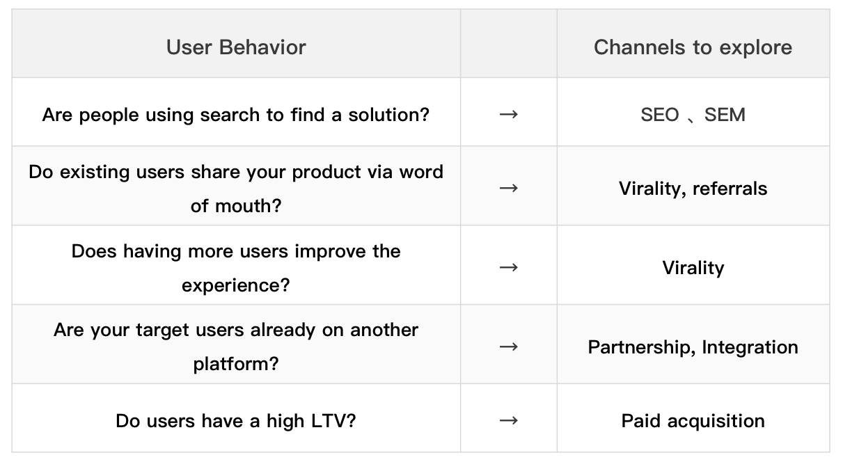 当你的核心指标确定之后,你需要问自己一些关于用户行为的基础问题来定义增长渠道。